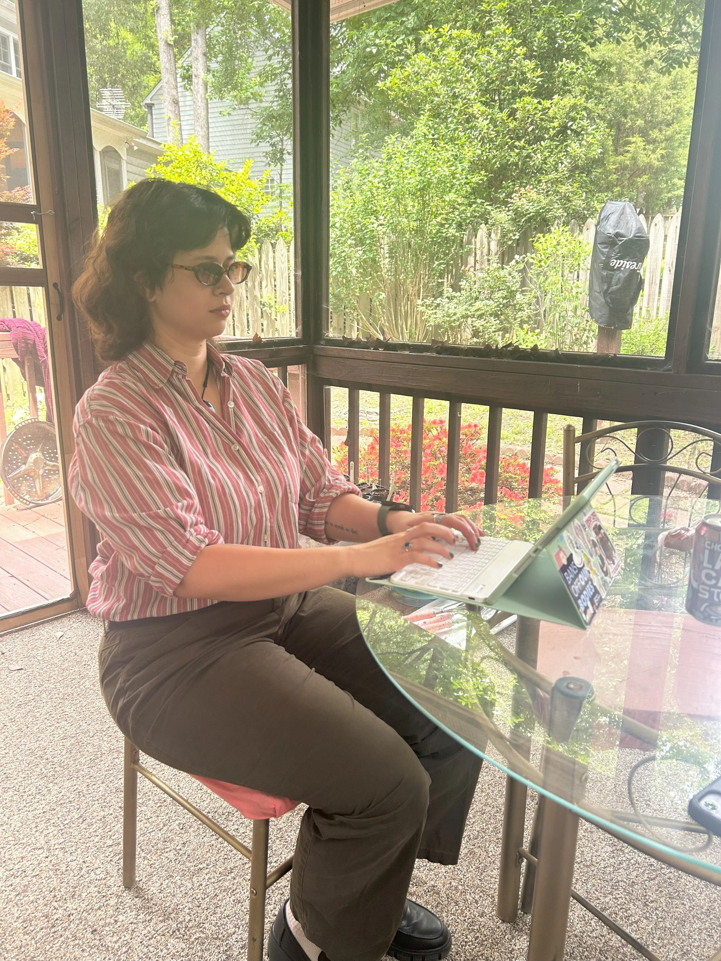 Redirection has been a recent theme within Cece’s current life. The work that has drawn and saved their creative light has been writing. What inspired this light was the book The Artist Way by Julia Cameron. The main activity that the author encourages the reader to do is called the morning papers, you are to write three pages of every thought that comes to mind. This simple challenge of writing everything down has changed Cece’s perspective and re-enlightened their creativity. Hardships has also been a plaguing theme of Cece’s life in the year of 2025 and writing everything has been the only grounding aspect of their creative life. They strive to integrate the practices of intimacy directing within their personal and creative auras to contest the hardships. This means taking breaks to check in with themselves and giving grace to projects not working out or not working at all. Cece aspires to have true balance between their personal and career health. In doing so they’re decentering capitalist ideals that have been ingrained in their creative mind. The constant need to produce for others has now shifted to the simplicity of creating to create. When they’re not writing they're reading. When they’re not reading or writing fortnight is being played with friends across state lines or their sister in the other room. When they actually leave the house, not in the pursuit of money, they are going to bars, having heart touching conversations, maybe with a stranger or an old friend. They simply seek living in the moment and creating for the sake of creating.